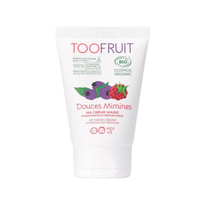 Die TOOFRUIT Handcreme Blaubeere-Himbeere wurde speziell für Kinder entwickelt und ist ideal für trockene und empfindliche Hände. Die pflegende Formel spendet Feuchtigkeit, beruhigt die Haut und schützt sie vor dem Austrocknen. Besonders geeignet für die tägliche Anwendung bei beanspruchter Kinderhaut.